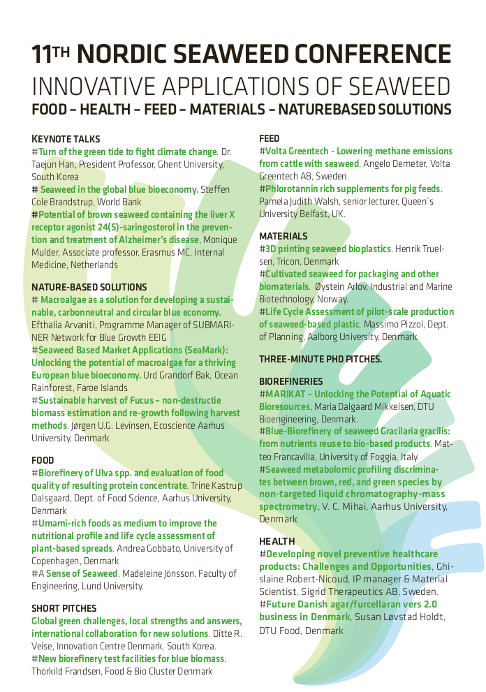 Nordic Seaweed conference wants to exchange knowledge and ambitious ideas between scientists, existing companies and upcoming entrepreneurs. Networking is an important part of the conference. New collaborations are started, exiting projects developed and new business partners found during the conference