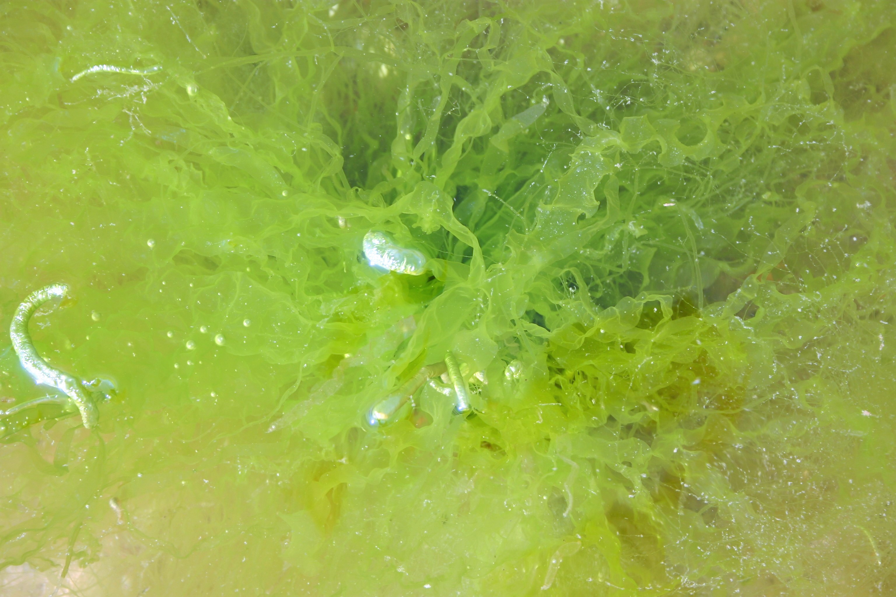 Cultivation of Ulva lactuca with manure for simultaneous bioremediation and biomass production.
